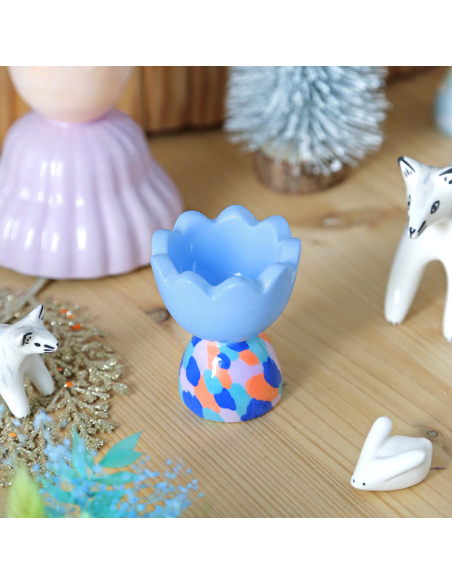 This earthenware candleholder was hand-made, assembled and painted in our Paris workshop.