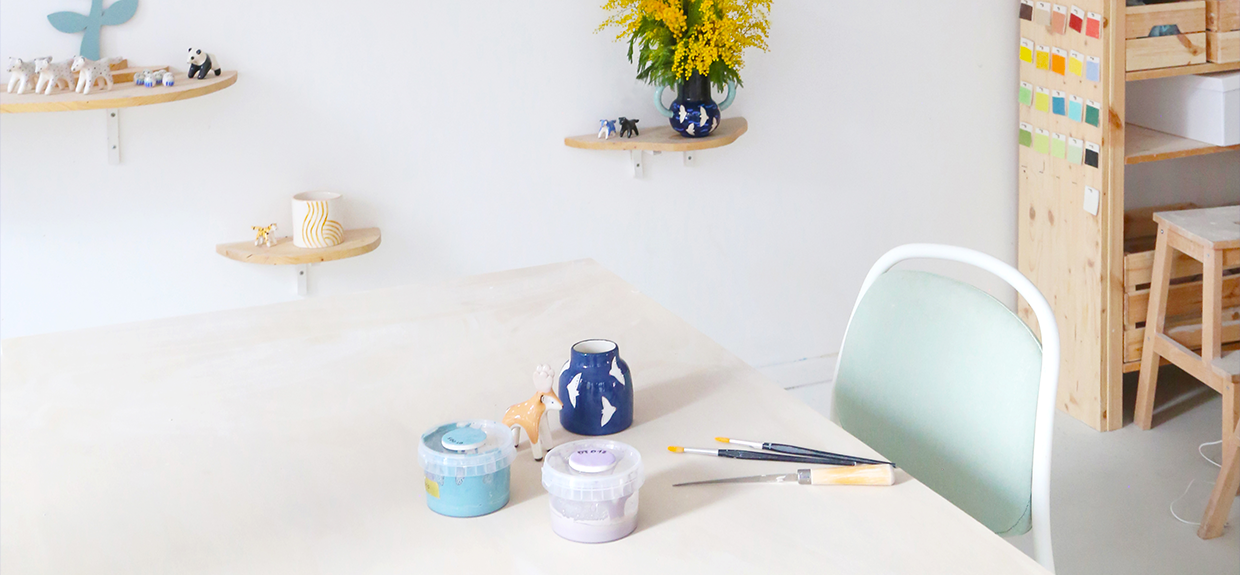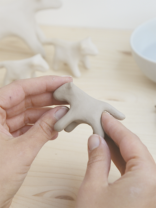 Under the hands of our ceramists, the material stretches, takes shape, and becomes animals or lucky charms. These shapes are smoothed, then the clay dries for ten days. Each member of the team specializes in certain shapes: Ivana the lucky charms, Héloïse the deer, Sara the tigers, and the foxes!