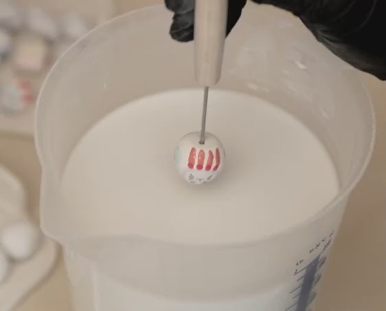 After the first firing, we move on to the biscuit stage. The clay is white, but still matte and porous. The pieces are immersed in a bath of transparent enamel followed by a second firing.